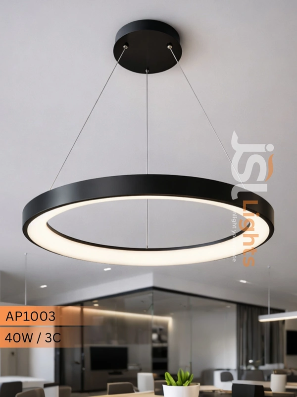AP1003 Smart Ring Pendent Light 40W Black Body Led Hanging Light| Best for office and Gym